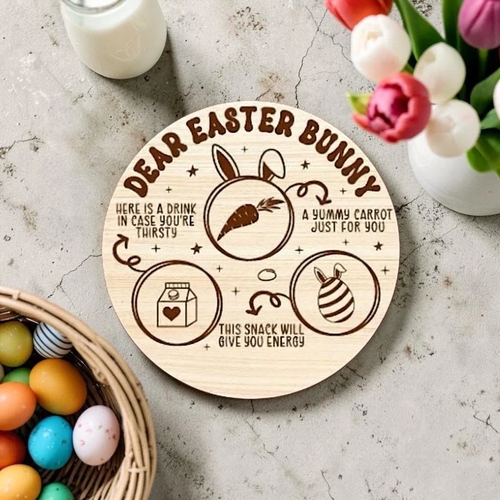 Create a magical Easter Eve tradition with this engraved Easter Bunny Treat Board. Designed for little ones to leave treats, drinks, and carrots for the Easter Bunny, this reusable wooden board becomes a keepsake your family will use year after year.