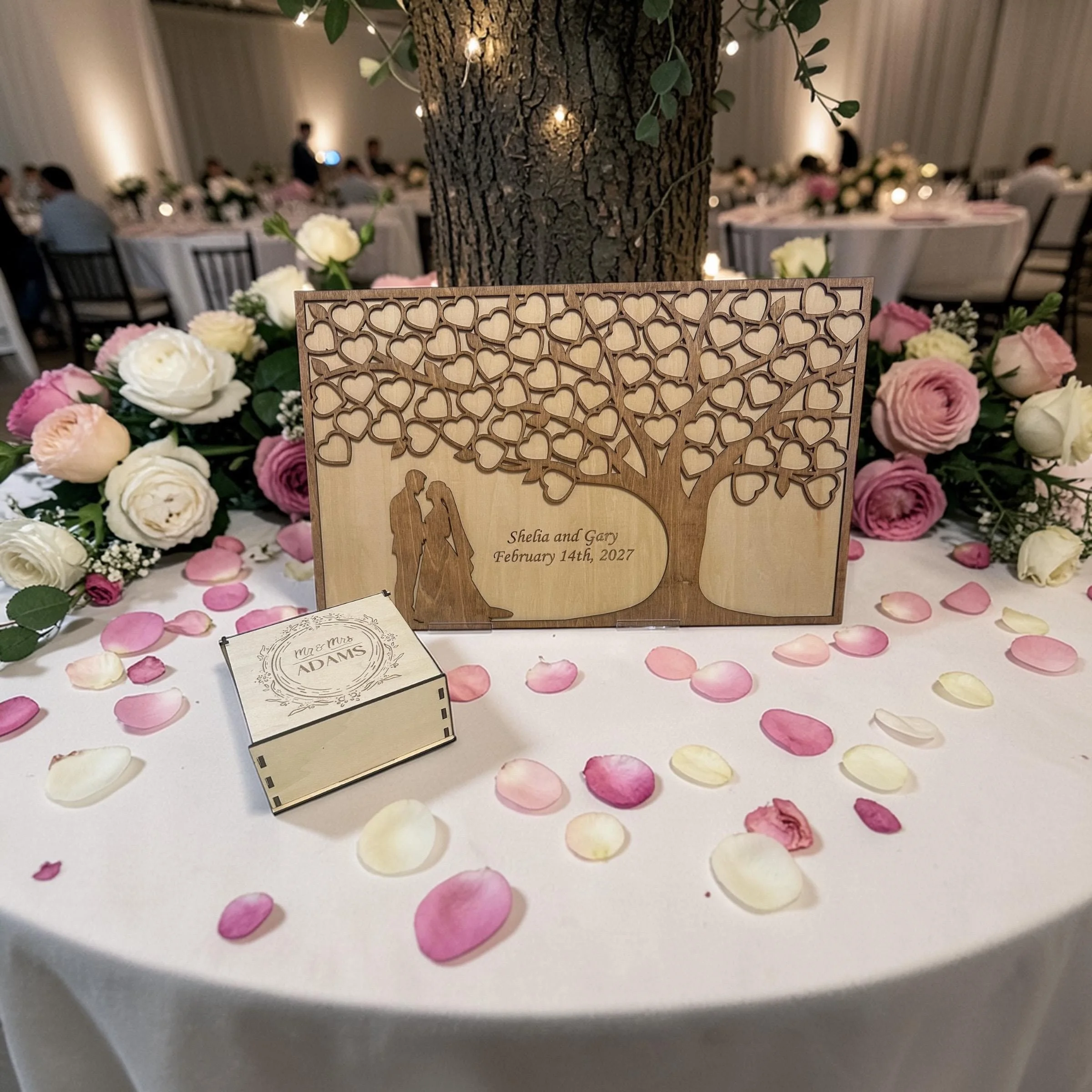 Personalized Wooden Heart Tree Guest Book | Wedding Keepsake Box